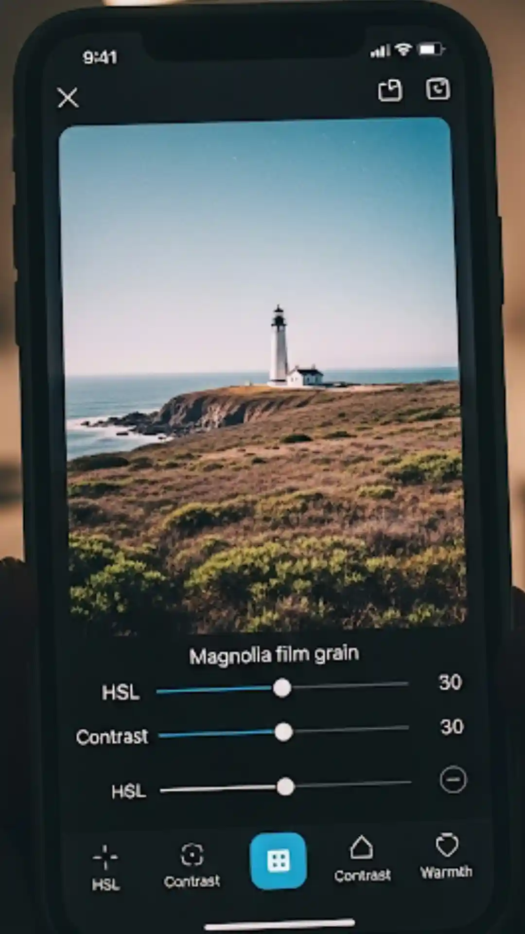 The Grain tool in VSCO adds a textured, film-like quality to your photos, enhancing their depth and character with adjustable grain levels.